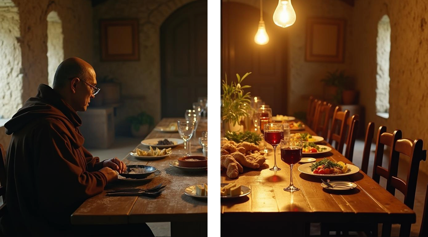 So this new sous chef shows up. I don’t remember his name. He’d worked at a monastery up in Big Sur - the silent monks, the ash-on-food place. He told me stories about how harsh it was up there. They’d sprinkle ash on the food because there should be no pleasure in their life. The Jesuits had a different philosophy entirely. For them, food was one of the few pleasures they were allowed. They loved to eat. They had a winery up in Santa Cruz. We had an excellent wine cellar. The whole approach was different. Food wasn’t something to endure. It was something to celebrate.